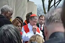On September 15, 2015, Francis named Cupich to participate in the Synod of Bishops in Rome in October, adding him to those proposed by the USCCB.[44] There he supported proposals to provide a path for remarried persons to participate in communion and to respect the decisions that those who remarry or gays in relationships "make about their spiritual lives".[45] Cupich identified himself with those synod fathers who favored a pastoral approach that begins with encountering each person's specific circumstances and highlighted the importance of conscience.[46] He said, "I try to help people along the way. And people come to a decision in good conscience. Then our job with the church is to help them move forward and respect that. The conscience is inviolable. And we have to respect that when they make decisions and I've always done that."[47]