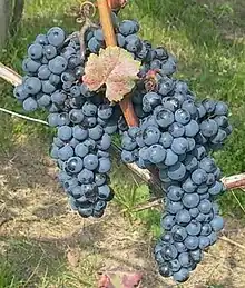 Blaufränkisch (German for blue Frankish) is a dark-skinned variety of grape used for red wine.[1] Blaufränkisch, which is a late-ripening variety, produces red wines which are typically rich in tannin and may exhibit a pronounced spicy character.[2]