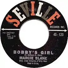 "Bobby's Girl" is a song and single written by Gary Klein and Henry Hoffman. The original was performed by American teenage singer Marcie Blane, and became a No.3 hit on the US charts. A near-simultaneous cover by British singer Susan Maughan was a hit in the UK, coincidentally also reaching No.3 on the UK charts.[2][3] Both Blane and Maughan are one-hit wonders; for both these artists, "Bobby's Girl" marked their only appearance on a national top 40 chart.