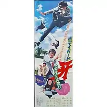 Bodigaado Kiba: Hissatsu sankaku tobi (ボディガード牙 必殺三角飛び), also known as Bodyguard Kiba 2, is a 1973 Japanese martial arts film starring Sonny Chiba. It is the sequel to the earlier 1973 film Bodyguard Kiba based on an action manga by Ikki Kajiwara.[2][3] Etsuko Shihomi makes her screen acting debut, replacing actress Yayoi Watanabe in the role of Naoto Kiba's sister Maki. Shihomi had previously worked as a stunt double for Watanabe in the earlier film Bodyguard Kiba. The movie is also considered a break-through for Masashi Ishibashi,[4] who would be asked by Sonny Chiba to play a major role in the 1974 movie, The Street Fighter.[5]