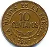 10 centavos 19 mm 2.2 g "LA UNIÓN ES LA FUERZA"; "10 CENTAVOS"; Date of issue 1987-1997