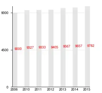 | Population | 9000 | 9327 | 9333 | 9405 | 9567 | 9657 | 9782 |