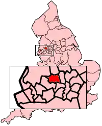 The Metropolitan Borough of Bolton shown within England.