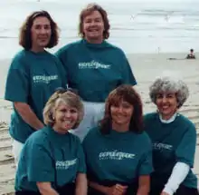 ![]() Unique Editions, tradigital art collective of the 1990s: top, left to right: Bonny Lhotka, Judith Moncrieff; bottom, left to right: Dorothy Krause, Karin Schminke, Helen Golden | |