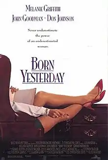 Born Yesterday is a 1993 American comedy film based on Born Yesterday, a play by Garson Kanin. It stars Melanie Griffith, John Goodman and Don Johnson. It was adapted by Douglas McGrath and directed by Luis Mandoki.