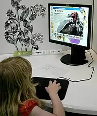 This computer uses a Dangerous Creatures CD-ROM, a program for children which allows them to learn about wildlife outside the UK while being entertained.[14] It is situated halfway along the wall opposite Reception. Near the computer is an identification-by-touch display of natural objects.