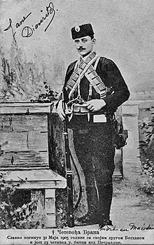 Branivoje Jovanović (Serbian Cyrillic: Бранивоје Јовановић; Kisiljevo, near Požarevac, 23 May 1883 - Petraljica, near Kumanovo, 30 May 1905), known by the nom de guerre Brana (Брана), was a Chetnik vojvoda (commander).