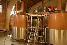 De La Senne is the initiative of Bernard Leboucq and Yvan De Baets. Leboucq set up the St. Peter's Brewery in the former lambic brewery Moriau in Sint-Pieters-Leeuw in 2003. He moved on to create Zinnebir, named after the Zinneke Parade. De Baets worked at Brouwerij De Ranke in Dottignies/Dottenijs. The two decided to start a brewery together in 2006. As the building in Sint-Pieters-Leeuw was no longer available, they brewed provisionally at the De Ranke and Proef breweries. Meanwhile the brewers searched for and found a suitable location in Brussels, a former industrial bakery in Molenbeek. A first test batch was brewed in the new premises at the end of 2010.[1] The brewery has a reputation for brewing fine ales and "frustratingly rare blends" that often include lambic from the nearby Cantillon Brewery.[2]