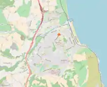 The town is situated on the east coast to the south of County Dublin. Shankill, County Dublin lies to the north, and Greystones, County Wicklow to the south. The village of Enniskerry lies to the west of the town, at the foot of the Wicklow Mountains. People participate in such sports as sailing, rowing, and swimming. The beach and seafront promenade are used by residents and visitors. While Bray's promenade and south beach is to a Blue Flag standard,[10] the north beach has been impacted by erosion and leaching pollution since the closure and sale of a municipal landfill in the late 20th century.[11][12][13]