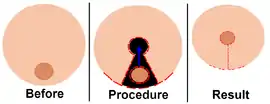 The reliability of the lipectomy procedure was confirmed in two studies. The first, Tumescent Technique, Tumescent Anesthesia & Microcannular Liposuction (2000), reported that tumescent liposuction is a reliable reduction mammoplasty procedure, which yields consistent results of size, appearance, and texture of the reduced-volume breasts.[33][34] The second study by Daniel Lanzer, Breast Reduction with Liposuction (2002), about a 250-patient cohort, reported that the application of tumescent liposuction, as the sole reduction-mammoplasty procedure, yielded consistent results wherein none of the patients had loose breast-skin envelopes, irregular breast-shape, permanent loss of sensation (either glandular, dermal, or of the NAC), scars, tissue necrosis, or infection.[35]