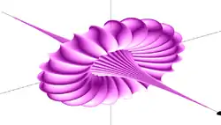 In differential geometry, a breather surface is a one-parameter family of mathematical surfaces which correspond to breather solutions[1] of the sine-Gordon equation, a differential equation appearing in theoretical physics. The surfaces have the remarkable property that they have constant curvature , where the curvature is well-defined. This makes them examples of generalized pseudospheres.