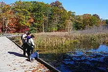 Broadmoor's 9 miles of trail pass through woodlands, marshland, ponds, and a glacial drumlin, and along the banks of the Charles River.[1] The sanctuary's wetlands feature wood ducks, painted turtles, great blue herons, and river otters.[8]