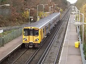 As of 22 August 2022, trains operate every 30 minutes between Liverpool and Ellesmere Port. [4] Trains operating between Liverpool and Chester no longer call at Bromborough Rake to improve the punctuality of services on the Chester line. [5] Any passengers travelling between Bromborough Rake and Chester now need to change at Hooton. Northbound trains operate via Hamilton Square station in Birkenhead and the Mersey Railway Tunnel to Liverpool. Southbound trains travel towards Hooton, where the lines to Chester and Ellesmere Port divide. These services are provided by Merseyrail's fleet of Class 507 and Class 508 EMUs.