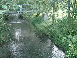 The source of the Bronnbach is a strong Karst spring. Its spring box is located completely in the municipal waterworks. On average, the karst spring discharges about 450 litres of water per second (max. 1180 L/s); its catchment area covers about 90 to 100 km². The part of the spring water that is not fed into the drinking water supply flows through a drain pipe into the original course of the Bronnbach stream. After a good 400 m , this stream flows into the Neckar in the left Neckar floodplain at the Bronnmühle. The Bronnbachspring now supplies the city centre, the districts of Seebronn and Hailfingen as well as Weiler and Bad Niedernau south of the Neckar [1]