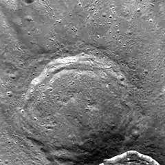 Brontë is a crater on Mercury. It has a diameter of 68 kilometres (42 miles).[1] Its name was adopted by the International Astronomical Union in 1976. Bronte is named for English writers Charlotte Brontë, who lived from 1816 to 1855, Emily Brontë, who lived from 1818 to 1848, and Anne Brontë, who lived from 1820 to 1849, and English writer and artist Branwell Brontë, who lived from 1817 to 1848.[1]