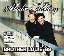 "Brother Louie '98" is the re-packaged version of the original 1986 version of "Brother Louie", released as the second single from Modern Talking's seventh studio album, Back for Good (1998), and also the second single following the duo's reunion. "Brother Louie '98". The single, as the first single "You're My Heart, You're My Soul '98" off Back For Good, features Eric Singleton.