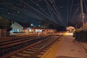 The original substation constructed by the Pennsylvania Railroad in 1913–1915 at the station was part of a project to electrify the line between Broad Street Station in Philadelphia and Paoli Station and was the first catenary electrification project done by the Pennsylvania Railroad.[10][11] The substation has since been relegated to switching duties.[12] It was proposed in 2013 that this substation be replaced as part of a larger project, but that was rejected by local government.[12]