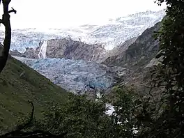 Buarbreen or Buerbreen is a glacier in Ullensvang Municipality in Vestland county, Norway. It is an offshoot of the large Folgefonna glacier. The small glacial arm reaches down into the Buardalen valley, just 6 kilometres (3.7 mi) southwest of the town of Odda. The glacier is split into two parts, one on either side of a small mountain peak. Both sides drain into the Jordalselvi river which flows out through the valley into the lake Sandvinvatnet.[1]
