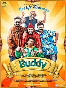 Buddy is a 2013 Indian Malayalam-language drama film written and directed by Raaj Prabavthy Menon. The film has been produced by Augustin Jackson and it features an ensemble cast of Anoop Menon, Srikanth, Bhumika Chawla, Balachandra Menon, Asha Sarath, Lal and Honey Rose.[2][3][4] Balachandra Menon made a comeback after a long time through this film.