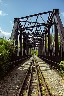 Following the diversion of the Singapore Railway from Bukit Panjang railway station onwards, the Bukit Timah Truss Bridge was constructed at the seventh mile of Bukit Timah Road, just before Bukit Timah railway station, in 1932.[1] By 1995, the bridge was not well-maintained, having become heavily rusted, with several bolts having already fallen off, despite the bridge's frequent usage.[2] The bridge fell into disuse following the closure of the Singapore Railway in 2011 and was gazetted for conservation in late 2015 or early 2016.[3][4]