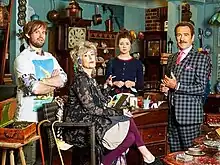 ![]() Promotional image released in anticipation of the series' broadcast, from left to right: Naz Osmanoglu (Toby), Maureen Lipman (Beverley Bull), Claudia Jessie (Faye), and Robert Lindsay (Rupert Bull) | |