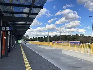 As the busway is still under the design and planning phase, an interim design that includes a bus turnaround at the western end of the platforms will be constructed to allow buses to deliver passengers to the stop and return to Thompsons Road. It will be fully integrated with the busway once it has finished construction in 2028.[6]
