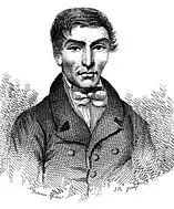 Knox was an anatomist who had qualified as a doctor in 1814. After contracting smallpox as a child, he was blind in one eye and badly disfigured.[15] He undertook service as an army physician at the Battle of Waterloo in 1815, followed by a posting in England and then, during the Cape Frontier War (1819), in southern Africa. He eventually settled in his home town of Edinburgh in 1820. In 1825 he became a fellow of the Royal College of Surgeons of Edinburgh, where he lectured on anatomy. He undertook dissections twice a day, and his advertising promised "a full demonstration on fresh anatomical subjects" as part of every course of lectures he delivered;[16] he stated that his lessons drew over 400 pupils.[17] Clare Taylor, his biographer in the Oxford Dictionary of National Biography, observes that he "built up a formidable reputation as a teacher and lecturer and almost single-handedly raised the profile of the study of anatomy in Britain".[15] Another biographer, Isobel Rae, considers that without Knox, the study of anatomy in Britain "might not have progressed as it did".[18]