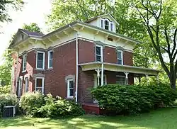 Burnett was a lumber merchant who had the house built in 1888. James H. Montgomery was a partner in Joel Turney & Co., which manufactured farm wagons and was largest private-sector employer in Jefferson County before World War I.[2] The factory closed in 1932 as a result of the Great Depression and the decline in the use of horse-drawn wagons. This two-story brick house was designed in the Italianate style. It features a wrap-around porch and a two-story frame carriage house behind it. The house's historical significance is derived from its architecture and its association with the development of industry in Fairfield.[2]