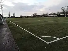 On the eastern periphery of Burnside, Stonelaw High School has a 'Community Wing' with sports facilities and hall as well as an AstroTurf football pitch,[57][58] installed adjacent to the school's new buildings a year before the move was completed in 1998[59] - this land was previously the recreation grounds for the James Templeton & Co textile company in Glasgow,[60] and the bowling club bearing the Templeton name at that location continues on its own.[61] Burnside Bowling Club (1909) is located next to the old Burnside tennis courts[62] and there are other bowling clubs on the border with central Rutherglen (on Stonelaw Road and in Overtoun Park).[63][64]