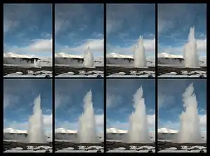 Burst mode, also called continuous shooting mode, sports mode, continuous mode, or burst shot, is a shooting mode in still cameras where several photos are captured in quick succession by either pressing the shutter button or holding it down.[1] This is used mainly when the subject is in successive motion, such as sports photography. The photographer can then select the best image of the group or arrange them in a sequence to study the transitions in detail.