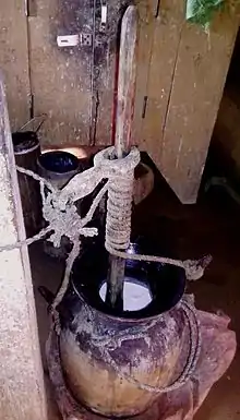 The churning of butter is an important part of Nepalese livelihood. Not only a part of day-to-day activity, it is a component of traditional culture and identity of Nepalese society.[1][2] It involves the separation of butter from curd by the action of centrifugation using a series of traditional devices.[2]