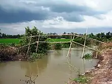 A cầu khỉ ("monkey bridge") in Vietnam is a handmade bamboo or wooden passway across a stream or gully.[1][2] The "monkey bridge", as a uniquely Vietnamese traditional symbol, was the inspiration for the title of American author Lan Cao's novel Monkey Bridge.[3]