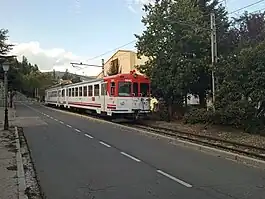 Line C-9, formerly known as the Guadarrama Electric Railway (Spanish: Ferrocarril Eléctrico del Guadarrama), is a narrow-gauge mountain railway incorporated into Madrid's Cercanías commuter rail network. The line is operated by Renfe Operadora and runs through the Guadarrama Mountains from Cercedilla, Madrid to Cotos Pass, Segovia.[3][4] Although classified as a commuter rail line, Line C-9 primarily serves the ski resorts at Cotos and Navacerrada Passes,[5] connecting with the rest of the commuter rail system with the Line C-8 at Cercedilla Station.[1] Line C-9 is the only metre-gauge railway among the Cercanías Madrid lines.[6]