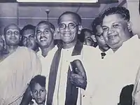 As a gifted orator, he was instrumental in the Sri Lanka Freedom Party's victory at the 1956 general election, working the crowds before public appearances of party chief, S. W. R. D. Bandaranaike.[4] He contested the election in the seat of Kadugannwa and was elected the first member for the electorate receiving 42,982 votes (41% of the total vote). Prime Minister Bandaranaike appointed Marikkar to his cabinet as the Minister for Post, Broadcasting and Communication. In his ministerial role he recommended that Bandaranaike to censor Voice of America transmissions into Ceylon.[5] In 1959 he rode to a party convention on the back of an elephant, creating a diversion from those that were gathered to criticise the Bandaranaike government.[6]