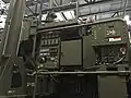 An iLauncher within the Sky Sabre air defence system of the British Army. The black dome atop the telescopic mast contains the missile data link whilst beside it is the (collapsed) electro-optical system. The vehicle in the background mounts the towering SAAB Giraffe radar specific to Sky Sabre.