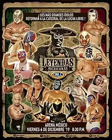 The Mexican wrestling company Consejo Mundial de Lucha Libre (Spanish for "World Wrestling Council"; CMLL) first held a show under the name Leyendas Mexicanas ("Mexican Legends") in November 2017,[2] with the 2019 show marking the third time the name has been used.[3][4] The Leyendas Mexicanas shows feature various lucha libre "legends" and celebrates the history of CMLL.