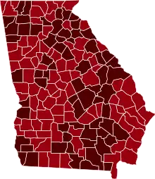 The COVID-19 pandemic was first detected in the U.S. state of Georgia on March 2, 2020. The state's first death came ten days later on March 12. As of April 17, 2021, there were 868,163 confirmed cases, 60,403 hospitalizations, and 17,214 deaths.[1] All of Georgia's 159 counties now report COVID-19 cases, with Gwinnett County reporting over 85,000 cases and the next three counties (Fulton, Cobb and DeKalb) now reporting over 56,000 cases each.[1] As of October 23, 2020, forty-five Georgia counties have higher per capita COVID-19 case rates than New York City.[1][2]