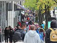 On March 11, six new cases of the coronavirus were reported by officials, including the first in Lake County, bringing the total to 25.[29] One of these cases was located at One Prudential Plaza, marking the first confirmed case in a major downtown Chicago office building.[30] Illinois colleges and universities, such as Northwestern University and the University of Illinois, announced measures to combat the spread of the virus on their campuses through extensions of Spring Break as well as implementing online classes for part or all of the remaining semester.[31][32] In response to the growing pandemic, both Former Vice President Joe Biden and Senator Bernie Sanders canceled campaign rallies planned for Illinois. Additionally, Chicago Mayor Lori Lightfoot canceled the city's annual St. Patrick's Day parade and Chicago River dyeing in response to coronavirus.[33] On March 12, seven new cases of the coronavirus were reported by officials, including the first child who tested positive in Illinois. This brought the total to 32.[34]
