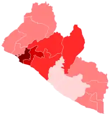 ![]() Map of the COVID-19 outbreak in Liberia by counties (as of 4 May 2021)
