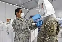 On April 1, 2020, Sisolak activated the Nevada National Guard to help deliver medical supplies.[16][114] Within a few weeks, he announced that an additional 700 members of the National Guard would join the coronavirus efforts. Most of them would be stationed in Las Vegas, where they would set up alternate care facilities, help with food banks, and provide medical support.[114] The Nevada National Guard concluded its mission on April 1, 2022, after two years. It was the longest activation in Nevada history since World War II.[115][116]