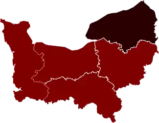 ![]() Map of the COVID-19 deaths at hospital in Normandy by departments as of 10 November 2022.
