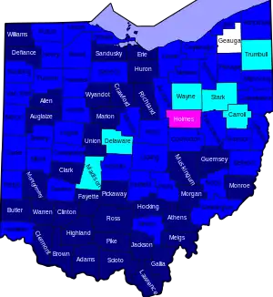 In late June and early July, some counties in Ohio experienced a sharp increase in cases.[26]