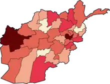 Afghanistan temporarily closed its border with Iran on 23 February when first suspected cases emerged in Herat province bordering Iran.[30] In March, it restricted most international flights.[31] By the end of March, strict restrictions on the movement of people and public gatherings were in place in several provinces;[32][33][34][35][36] lockdowns had also been implemented, including in Kabul and Kandahar.[37]