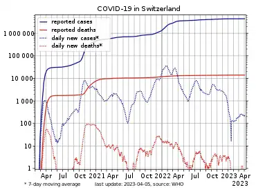 - ↑ "COVID-19 Switzerland". Federal Office of Public Health FOPH. 8 August 2021. Retrieved 8 August 2021.