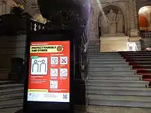 On 16 April, Switzerland announced that the country would ease restrictions in a three-step, gradual way. The first step began on 27 April, for those who work in close contact with others, but not in large numbers.[55] Surgeons, dentists, day care workers, hairdressers, massage and beauty salons could be opened with safety procedures applied. DIY stores, garden centres, florists and food shops that also sell other goods could also be opened. The second step was to begin on 11 May, assuming implementation of the first step without problems, at which time other shops and schools could be opened. The third step would begin on 8 June with the easing of restrictions on vocational schools, universities, museums, zoos and libraries.[55] From the 25 June onwards, the Government pays for the costs of an eventual Covid Test, if a patient has enough symptoms of COVID-19.[56] In July and August, masks became mandatory, first on public transport and then also in airplanes.[56]