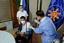 - ↑ "Duterte receives China's Sinopharm vaccine". Philippine Daily Inquirer. May 6, 2021. Retrieved May 6, 2021.