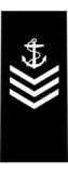 A three-bar chevron surmounted by an anchor. | Between Master Cadet and Petty Officer Second Class |