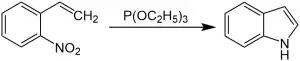The Cadogan–Sundberg indole synthesis, or simply Cadogan indole synthesis, is a name reaction in organic chemistry that allows for the generation of indoles from o-nitrostyrenes with the use of trialkyl phosphites, such as triethyl phosphite.[1][2][3][4][5][6][7]