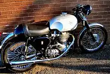 As owners became more experimental, they would fit engines in different frames. A typical example was the "Triton", a homemade combination of a Triumph Bonneville engine in a Norton Featherbed frame.[18] A less common hybrid was the "Tribsa", which had a Triumph engine in a BSA duplex frame. Other hybrids included the "NorVin" (a Vincent V-Twin engine in a Featherbed frame), and bikes with racing frames by Rickman or Seeley.