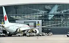 The Jumbo Jet age arrived in Calgary with the newly introduced Boeing 747 landing for the first time in 1973, with Wardair providing non-stop bi-weekly charter service from Calgary to London.[31] Air Canada was not far behind, and began non-stop service to London using the 747 starting on June 27, 1974.[32] In April 1974, Calgary International Airport hosted CP Air's flight testing for the Boeing 747 after airport firefighters went on strike at both Vancouver International Airport and Toronto Pearson Airport.[33]